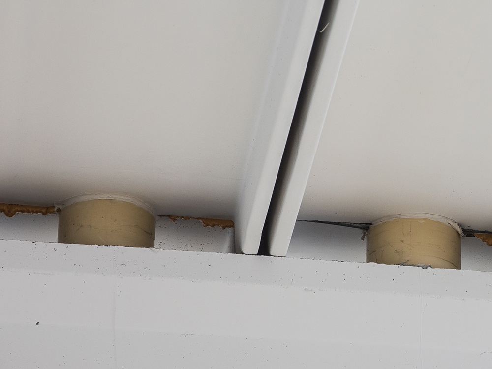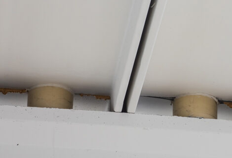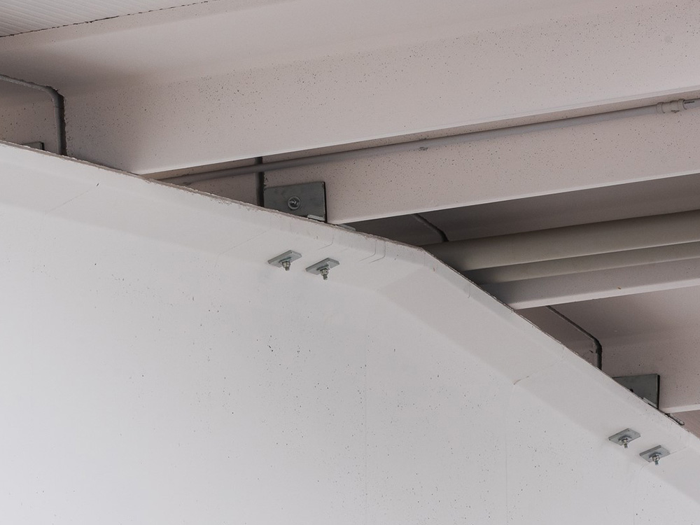 Interventi effettuati per l’adeguamento antisismico: fissaggio travi e pilastri e fissaggio tegoli su travi dalla copertura, fissaggio pannelli di tamponamento (contro pilastri o contro trave).