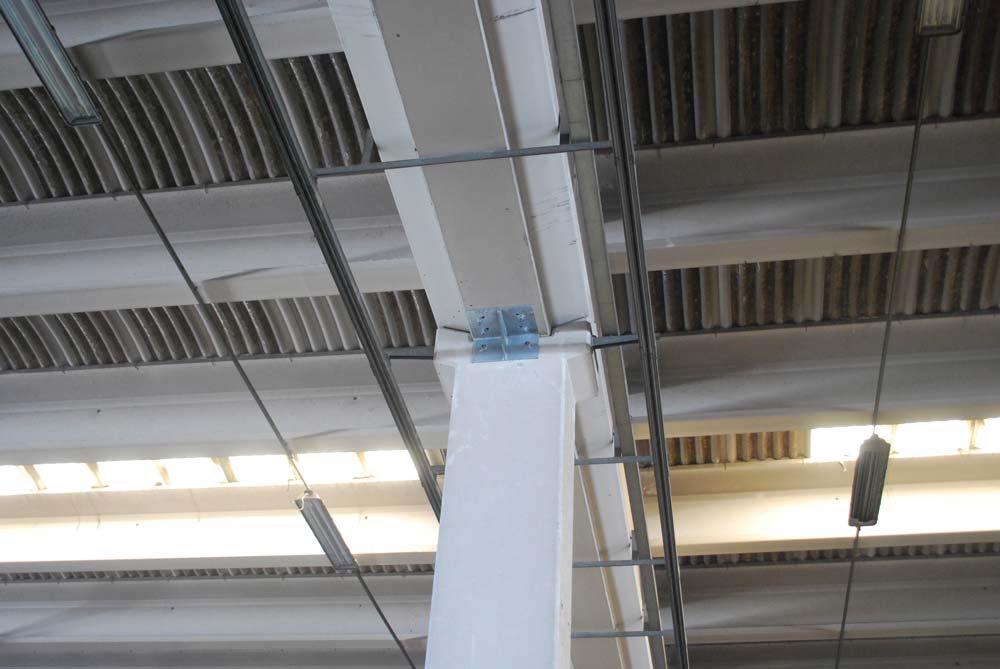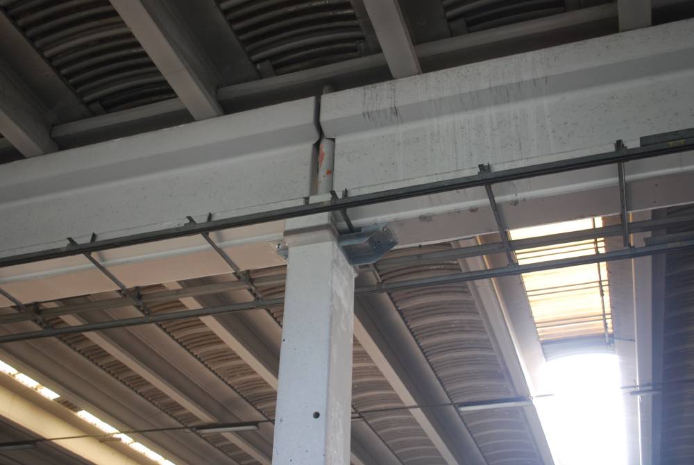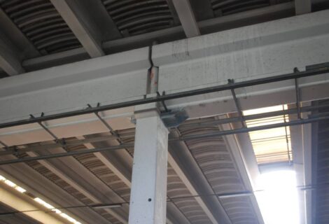 interventi effettuati per l’adeguamento antisismico: fissaggio travi e pilastri e fissaggio tegoli su travi, fissaggio pannelli di tamponamento (contro pilastri o contro trave).