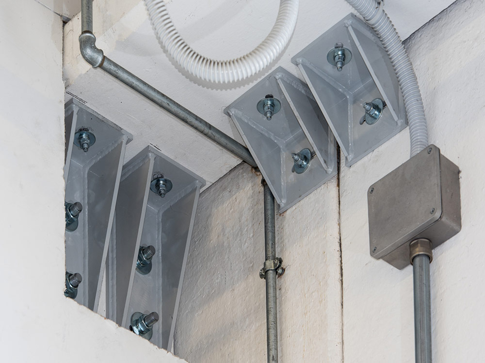 Interventi effettuati per l’adeguamento antisismico: fissaggio travi e pilastri e fissaggio tegoli su travi, fissaggio pannelli di tamponamento esterni (contro pilastri o contro trave).