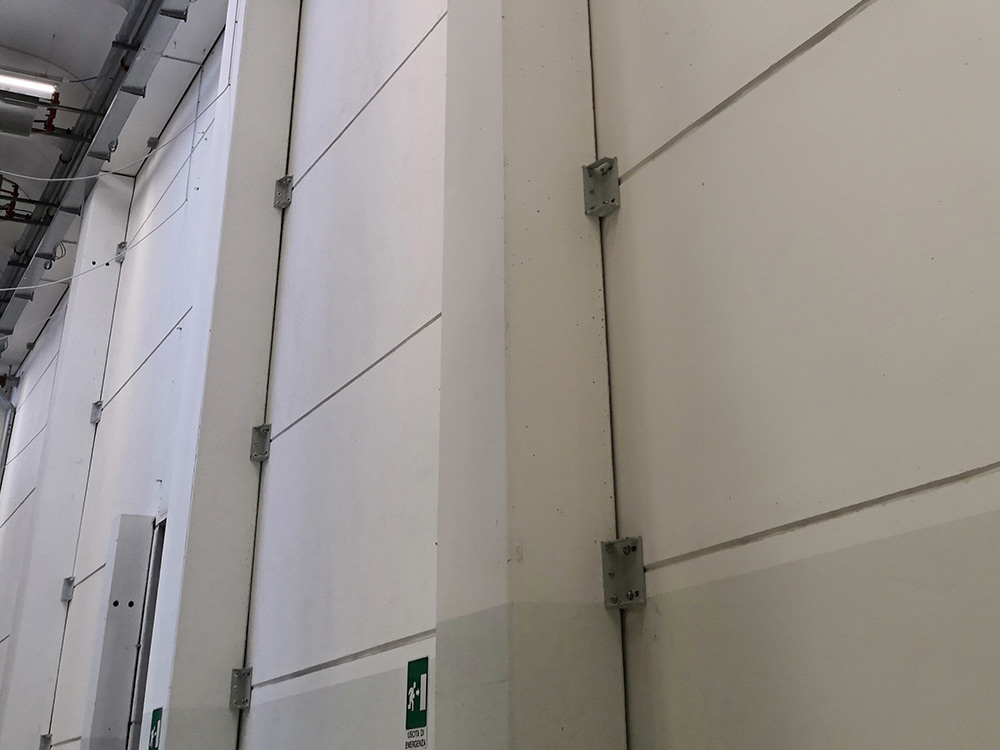 Interventi effettuati per l’adeguamento antisismico: fissaggio travi e pilastri e fissaggio tegoli su travi, fissaggio pannelli di tamponamento (contro pilastri o contro trave).