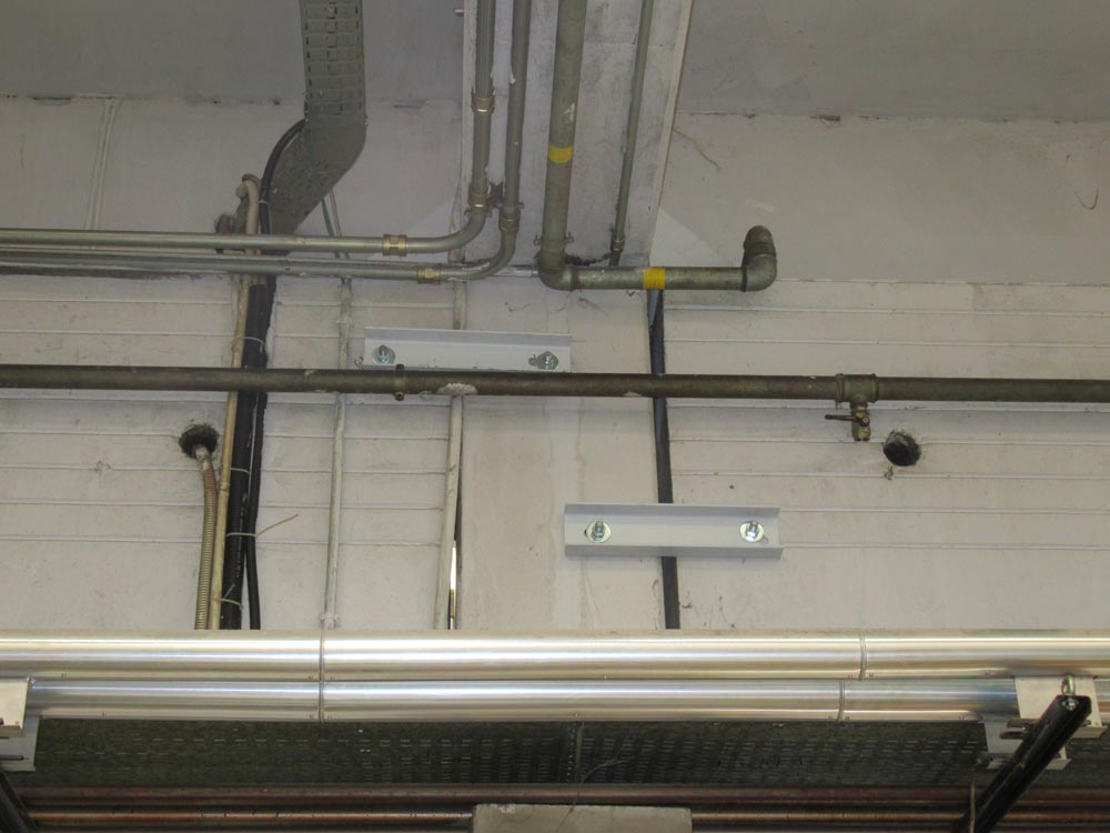 Interventi effettuati per l’adeguamento antisismico: fissaggio travi e pilastri e fissaggio tegoli su travi, fissaggio pannelli di tamponamento (contro pilastri o contro trave).