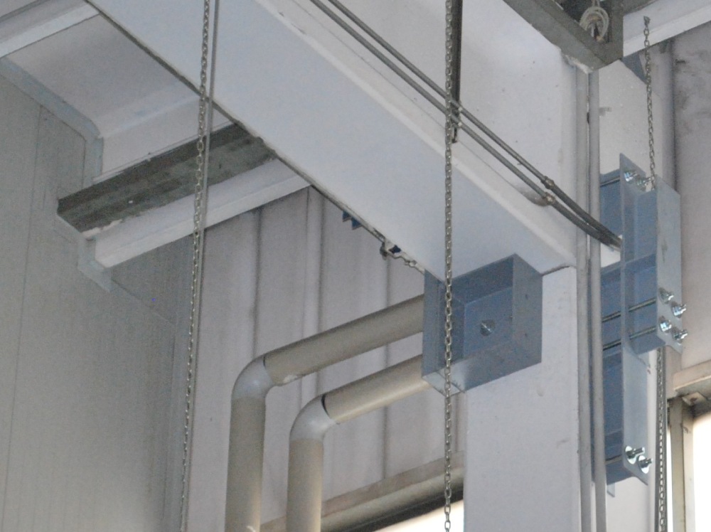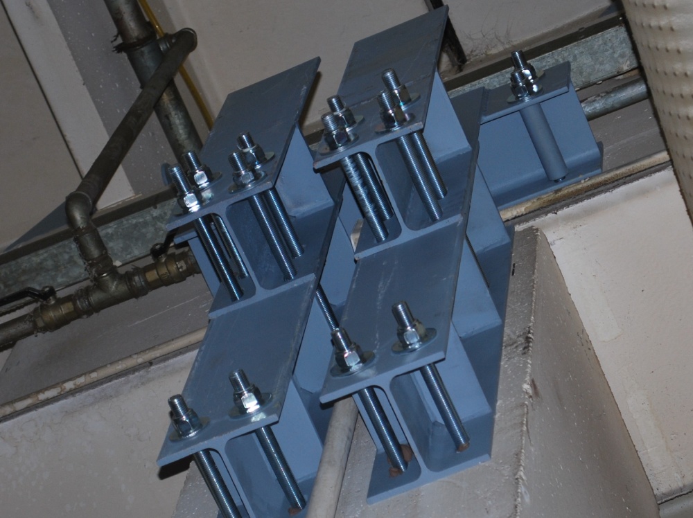 interventi effettuati per l’adeguamento antisismico: fissaggio travi e pilastri e fissaggio tegoli su travi, fissaggio pannelli di tamponamento (contro pilastri o contro trave).