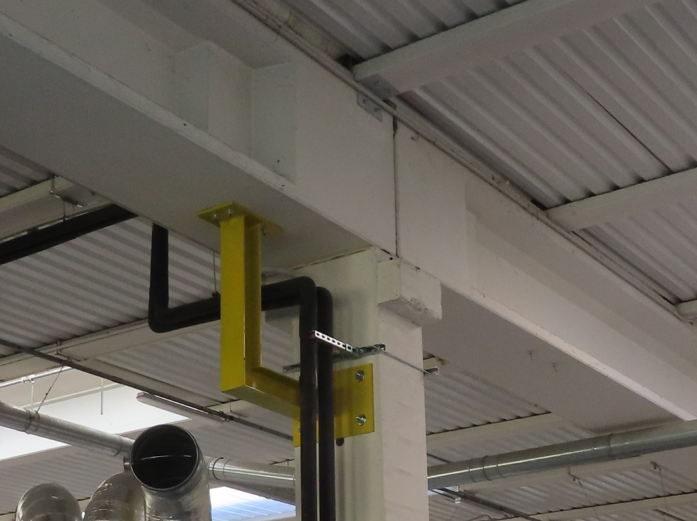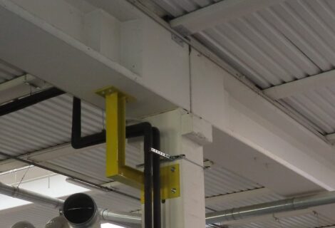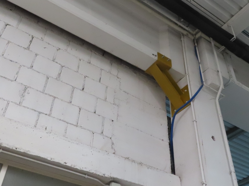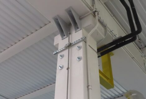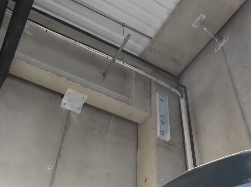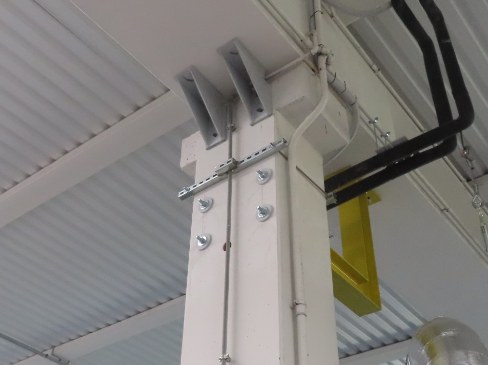 Interventi effettuati per l’adeguamento antisismico: fissaggio travi e pilastri e fissaggio tegoli su travi, lastre di copertura sui tegoli, fissaggio pannelli di tamponamento (contro pilastri o contro trave).