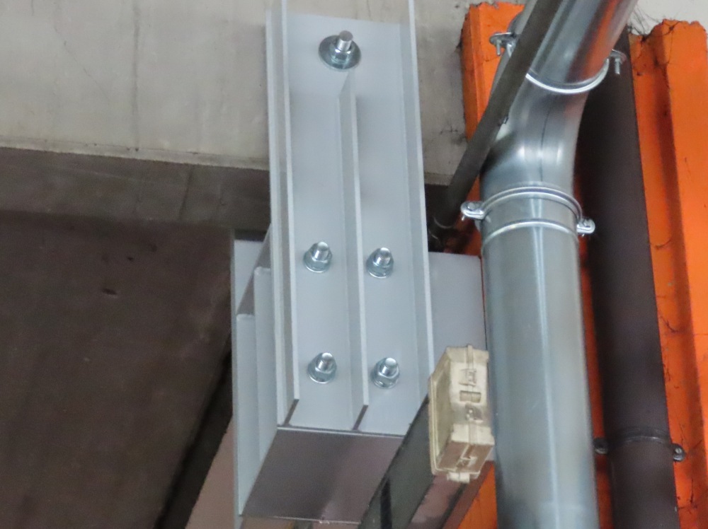 Interventi effettuati per l’adeguamento antisismico: fissaggio travi e pilastri e fissaggio tegoli su travi, fissaggio pannelli di tamponamento esterni (contro pilastri o contro trave).
