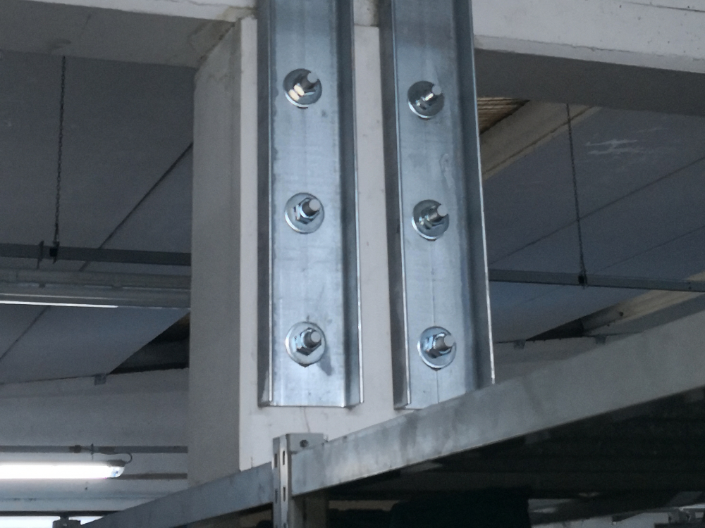 Interventi effettuati per l’adeguamento antisismico: fissaggio travi e pilastri e fissaggio tegoli su travi, fissaggio pannelli di tamponamento esterni (contro pilastri o contro trave).