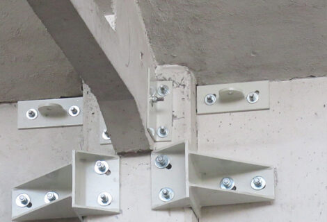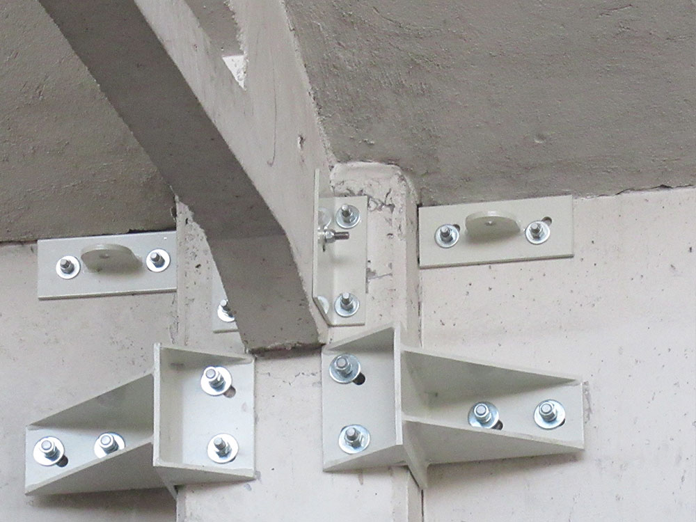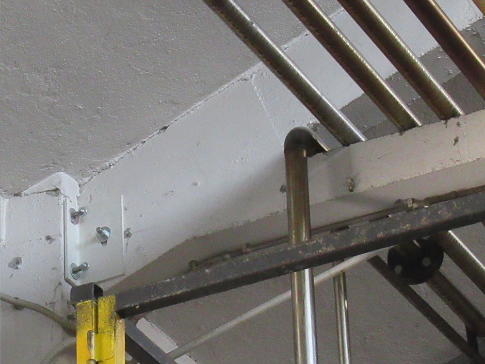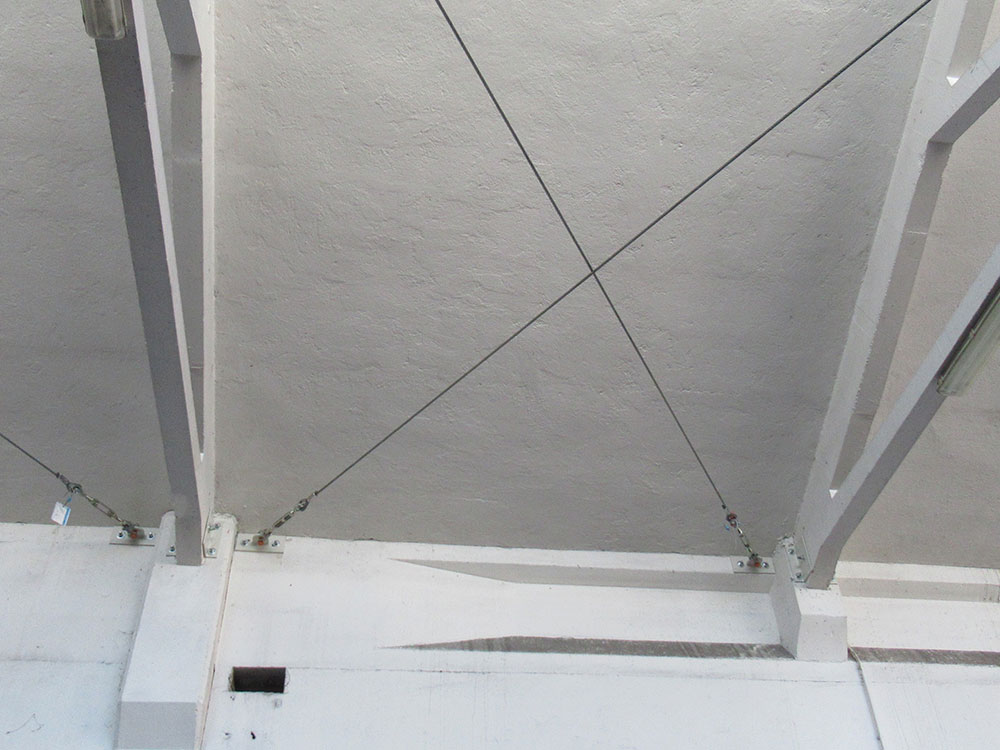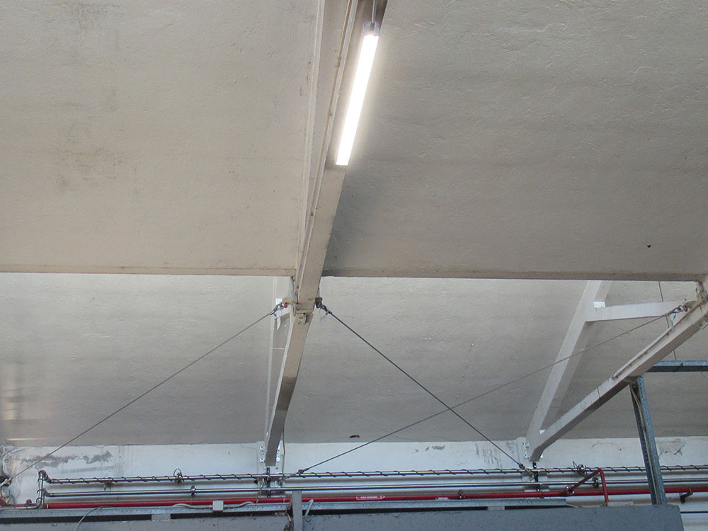 Interventi effettuati per l’adeguamento antisismico: fissaggio travi e pilastri e fissaggio tegoli su travi, fissaggio pannelli di tamponamento esterni (contro pilastri o contro trave).