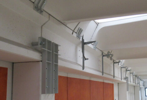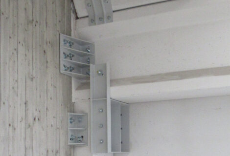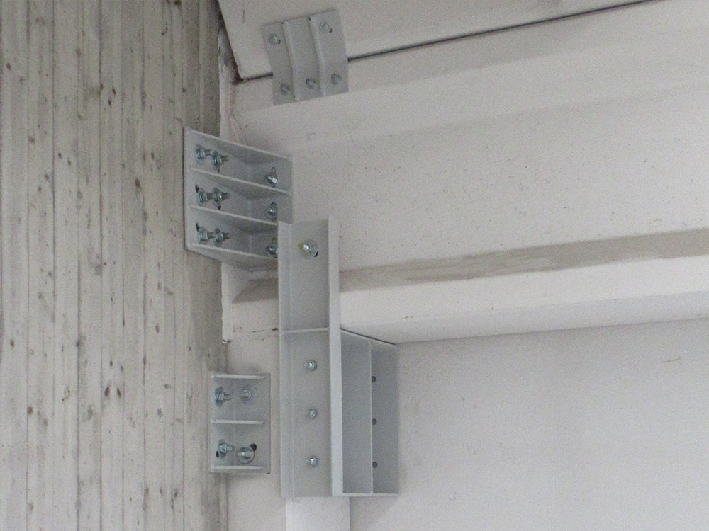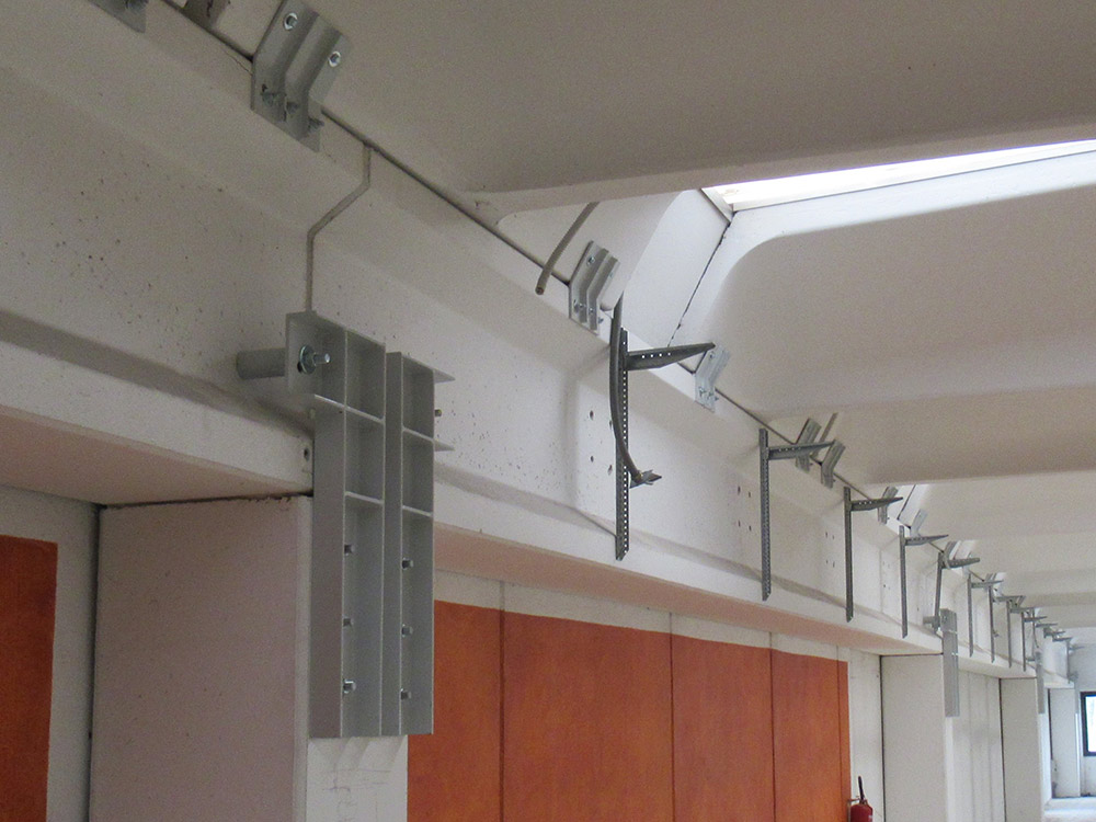 Interventi effettuati per l’adeguamento antisismico: fissaggio travi e pilastri e fissaggio tegoli su travi, fissaggio pannelli di tamponamento esterni (contro pilastri o contro trave).