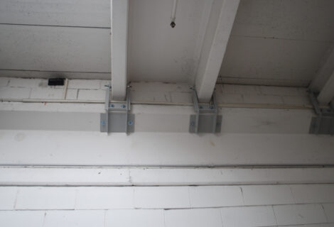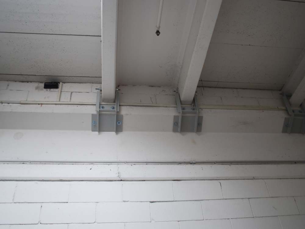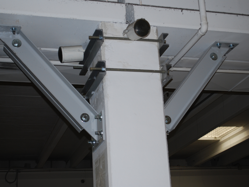 Interventi effettuati per l’adeguamento antisismico: fissaggio travi e pilastri e fissaggio tegoli su travi, fissaggio pannelli di tamponamento esterni (contro pilastri o contro trave).