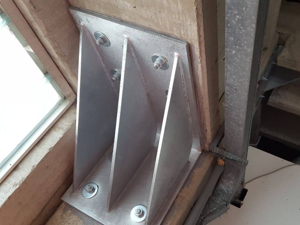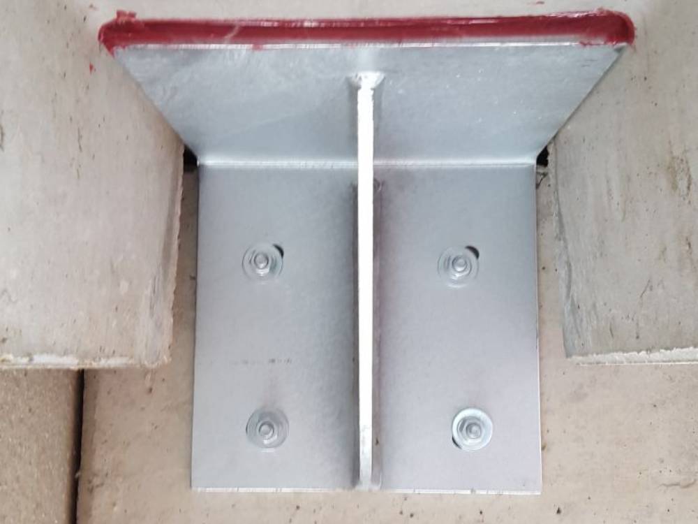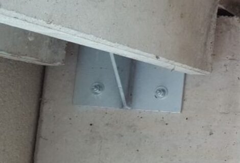 Interventi effettuati per l’adeguamento antisismico: fissaggio travi e pilastri e fissaggio tegoli su travi, fissaggio pannelli di tamponamento (contro pilastri o contro trave).