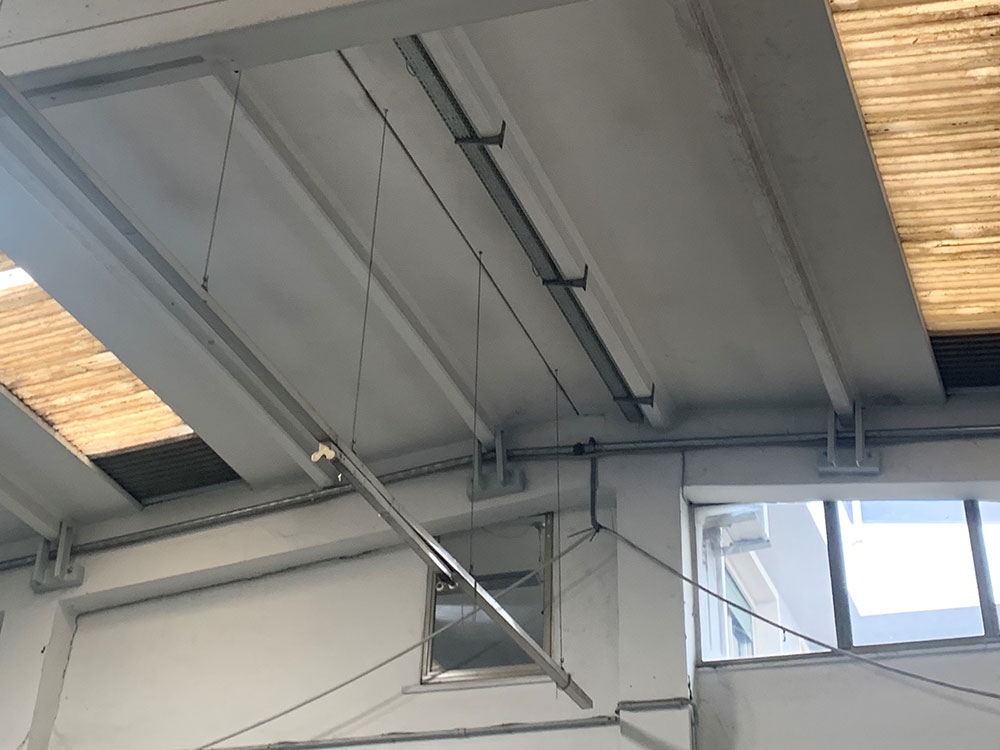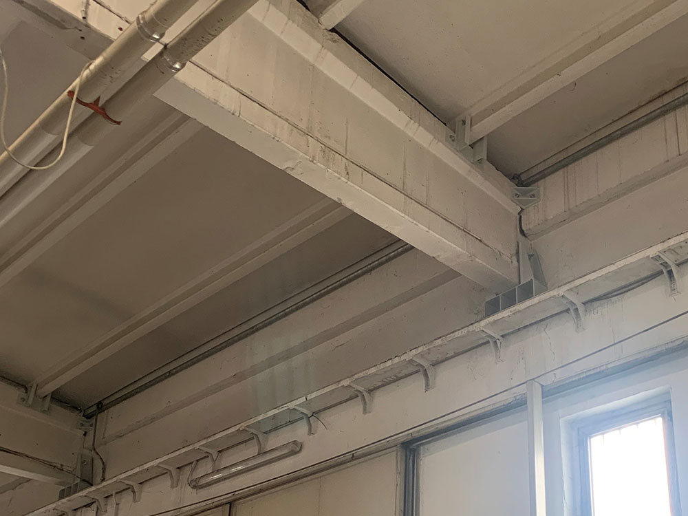 Interventi effettuati per l’adeguamento antisismico: fissaggio travi e pilastri e fissaggio tegoli su travi, fissaggio pannelli di tamponamento esterni (contro pilastri o contro trave).