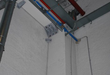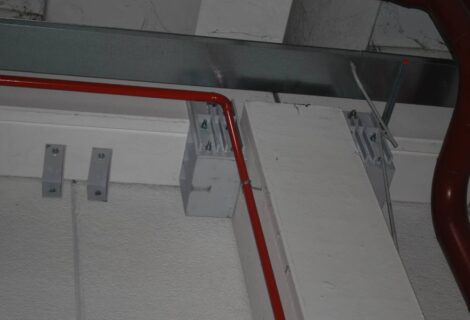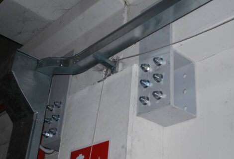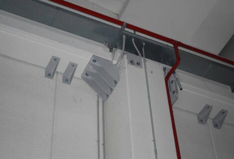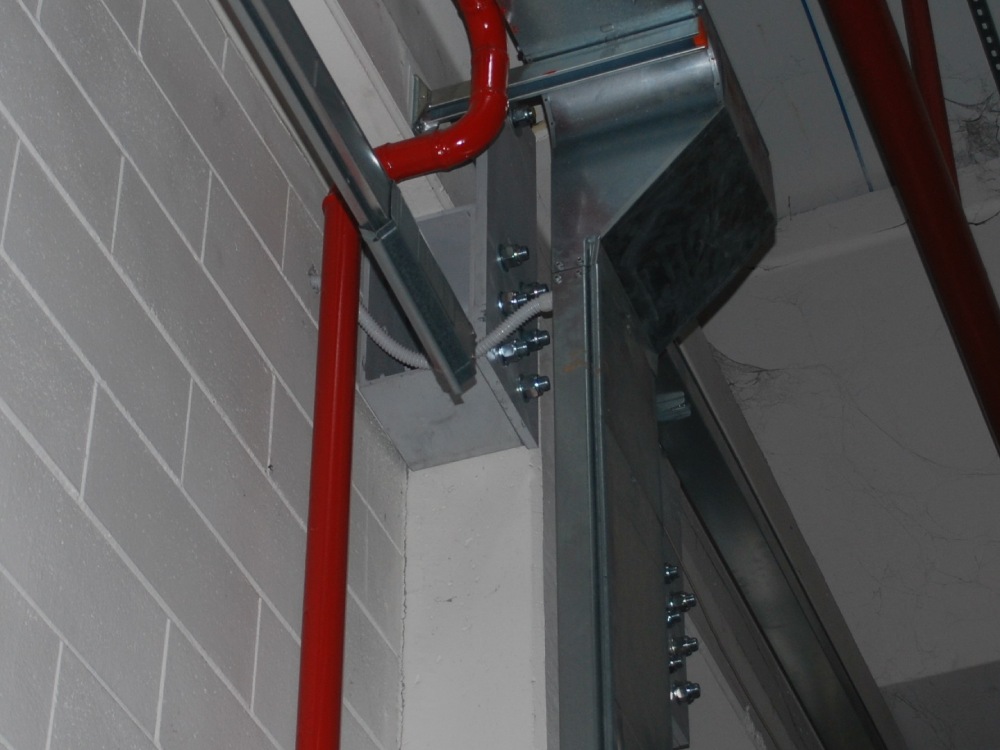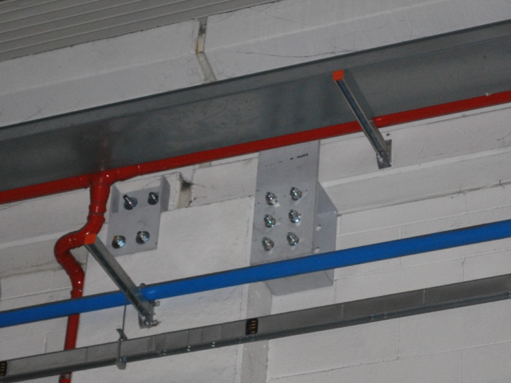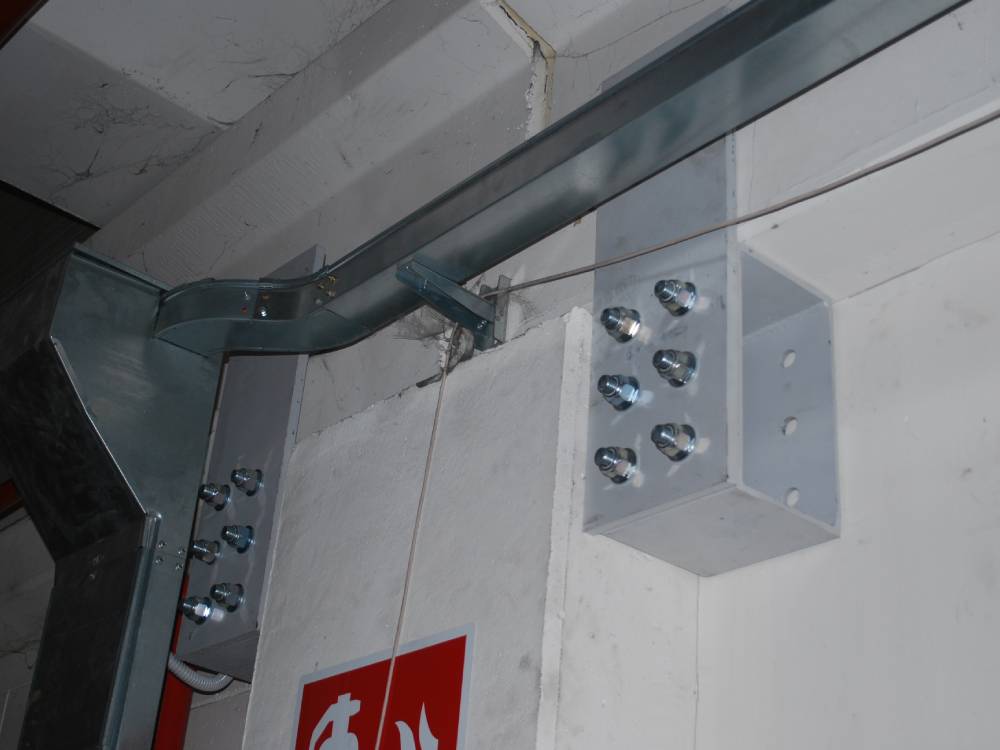 Interventi effettuati per l’adeguamento antisismico: fissaggio travi e pilastri e fissaggio tegoli su travi, fissaggio pannelli di tamponamento (contro pilastri o contro trave).