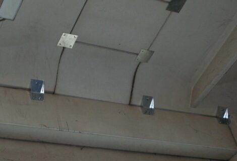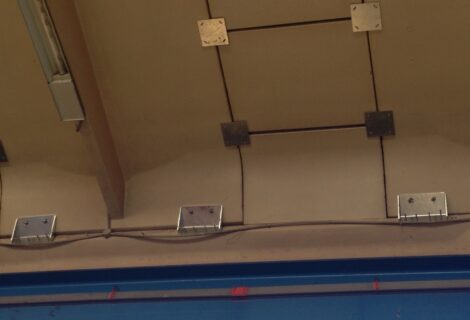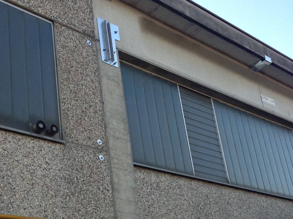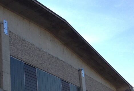 Interventi effettuati per l’adeguamento antisismico: fissaggio travi e pilastri e fissaggio tegoli su travi, fissaggio pannelli di tamponamento (contro pilastri o contro trave).