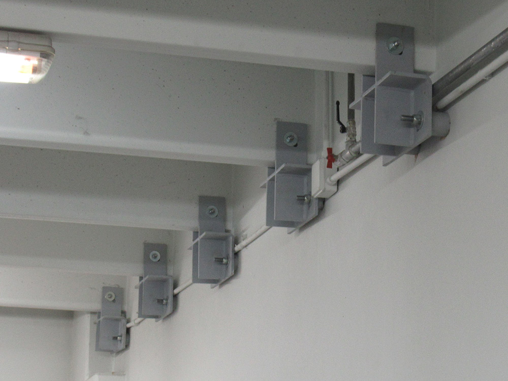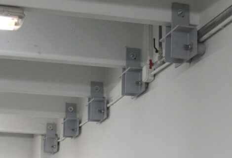 Interventi effettuati per l’adeguamento antisismico: fissaggio travi e pilastri e fissaggio tegoli su travi, fissaggio pannelli di tamponamento esterni (contro pilastri o contro trave).