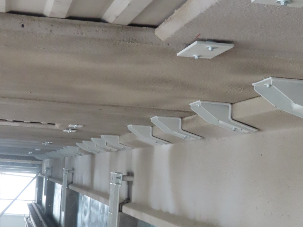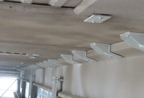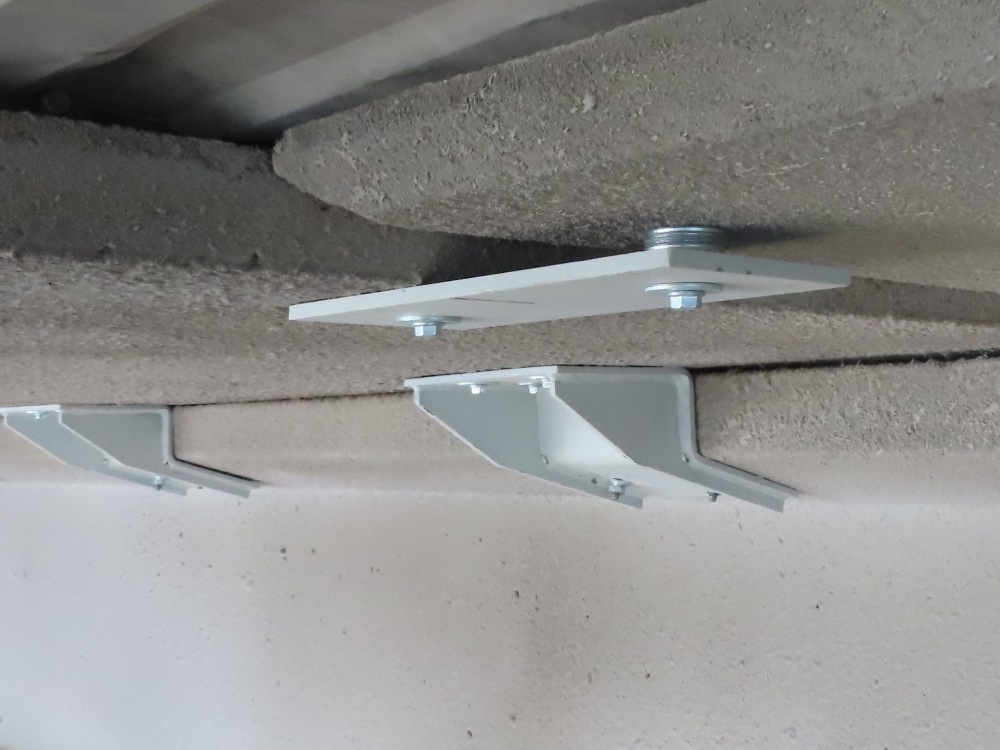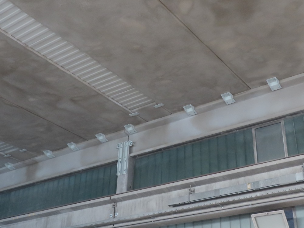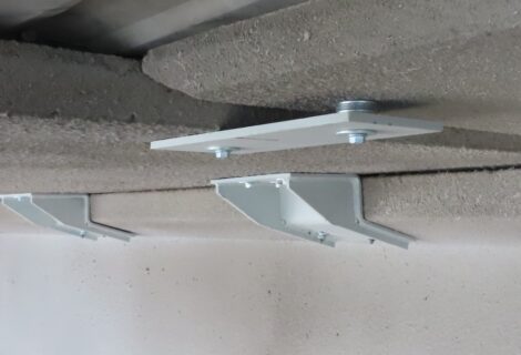 Interventi effettuati per l’adeguamento antisismico: fissaggio travi e pilastri e fissaggio tegoli su travi, fissaggio pannelli di tamponamento esterni (contro pilastri o contro trave).