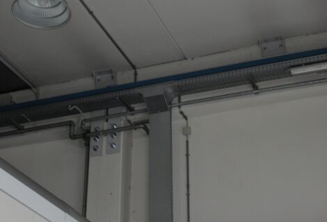 Interventi effettuati per l’adeguamento antisismico: fissaggio travi e pilastri e fissaggio tegoli su travi, fissaggio pannelli di tamponamento esterni (contro pilastri o contro trave).