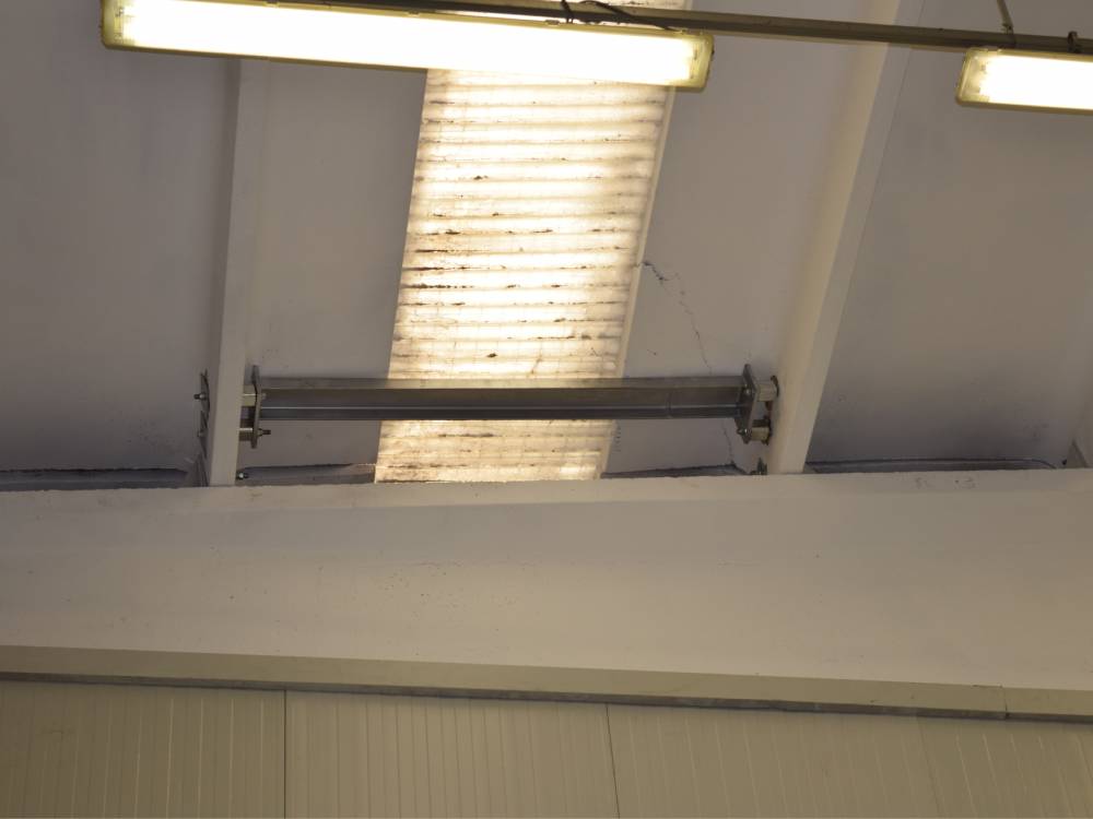 Interventi effettuati per l’adeguamento antisismico: fissaggio travi e pilastri e fissaggio tegoli su travi, fissaggio pannelli di tamponamento (contro pilastri o contro trave).