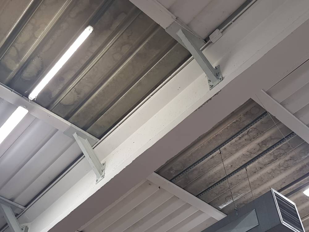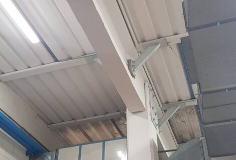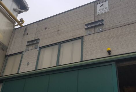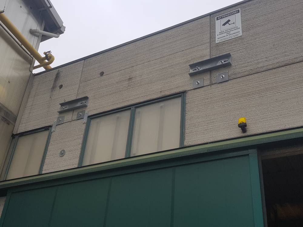 interventi effettuati per l’adeguamento antisismico: fissaggio travi pilastri dall’interno, tegoli travi dalla copertura, pannelli esterni, rimozione lastre in amianto.