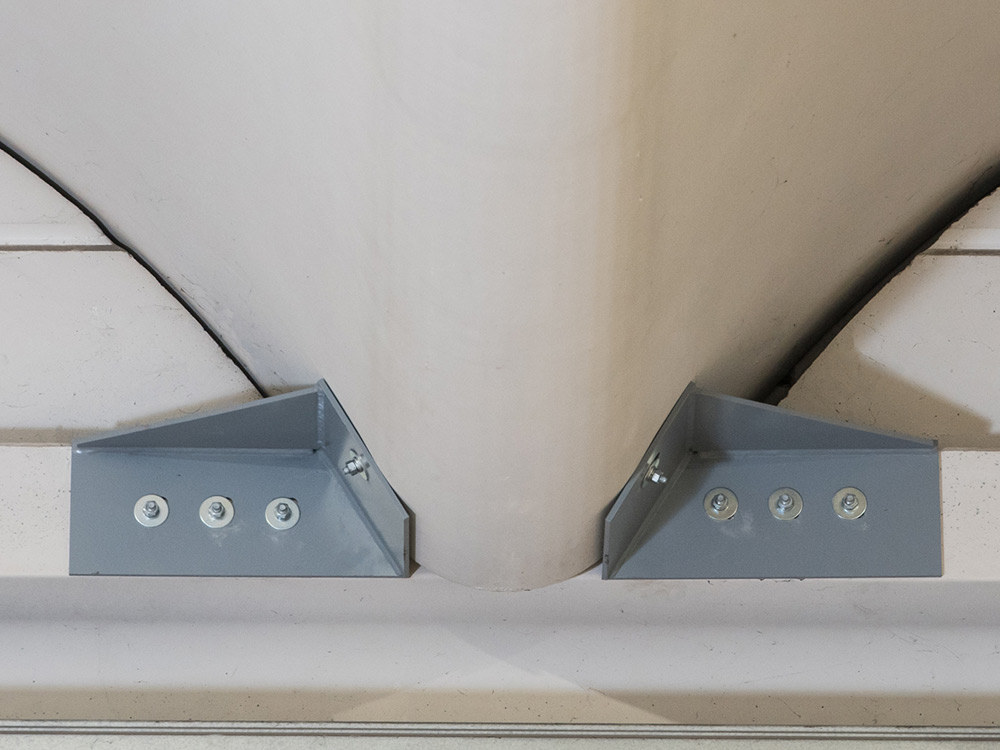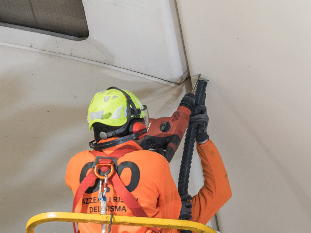 Interventi effettuati per l’adeguamento antisismico: fissaggio travi e pilastri e fissaggio tegoli su travi, fissaggio pannelli di tamponamento esterni (contro pilastri o contro trave).