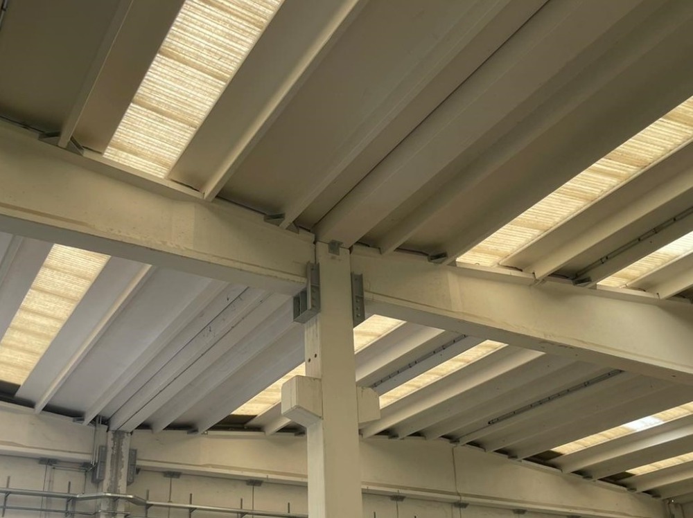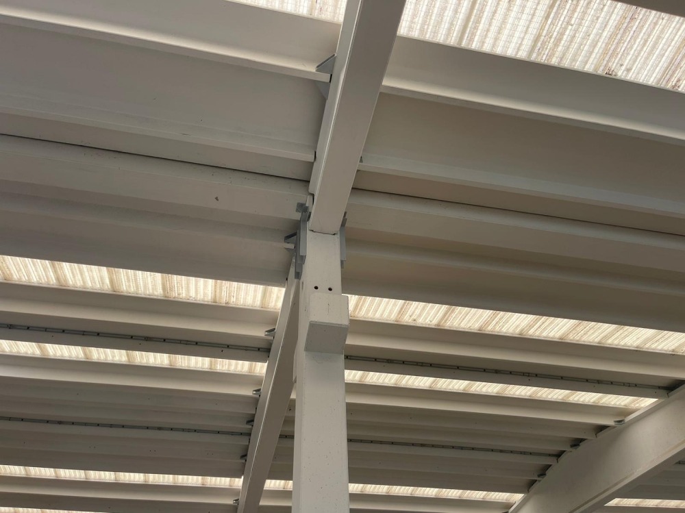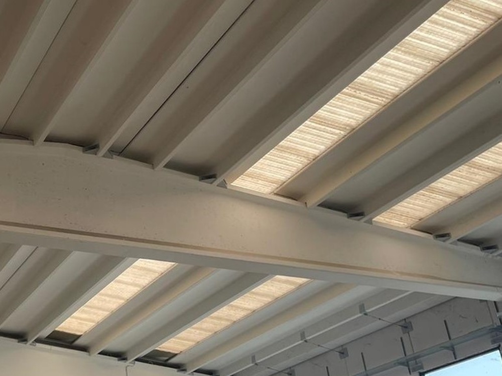 Interventi effettuati per l’adeguamento antisismico: fissaggio travi e pilastri e fissaggio tegoli su travi, lastre di copertura sui tegoli, fissaggio pannelli di tamponamento (contro pilastri o contro trave).